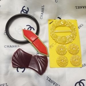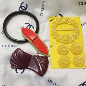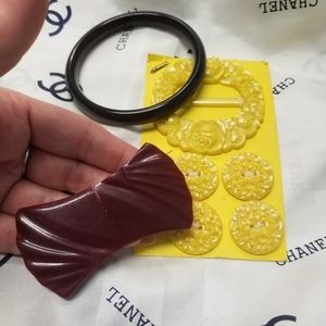 Your Creations can be the Greatest Items to make you be an envied coveted Designer. Beautiful Vintage Old Celluloid Belt Buckles & Buttons. I threw in a vintage dark brown moonglow bangle bracelet for free. All is in good to excellent Vintage condition. The original card with the yellow buckle & buttons measures 4 & 3/4" x 2 & 3/4" for reference of the size of items. The inner diameter of the gift bangle is 2 & 5/8". A wonderful collection for those who enjoy historical Treasures!