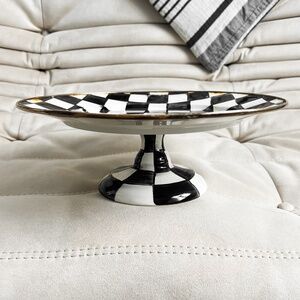 Rare older Mackenzie Childs fluted cake stand pedestal. Made from metal and enamel this cake stand has so much charm with its natural patina and metal exposure. I'm yet to see another one with this naturally aged condition. This could be used as a lovely home decor piece. Come as shown and comes sanitized prior to shipping.
