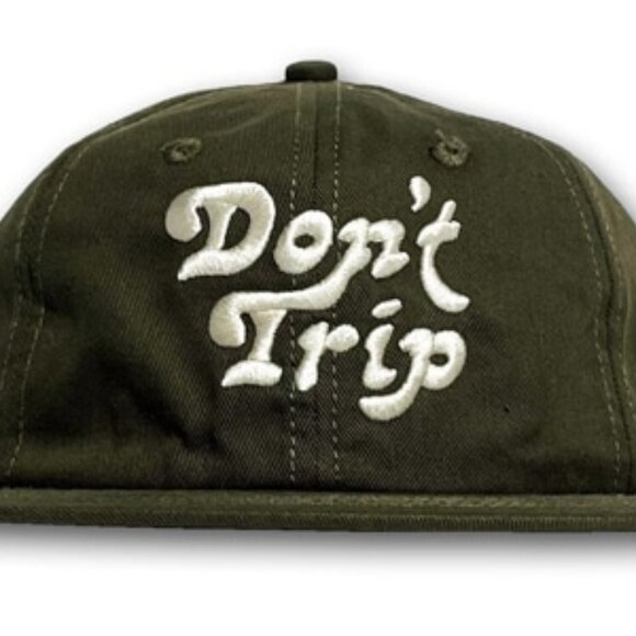 As made famous by Mac Miller, the Free & Easy Don't Trip strap back hat in olive green. The original Free & Easy classic hat in a hard-to-find colorway. Appears lightly used but in great vintage condition with that slightly worn in look that makes these hats so amazing.