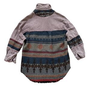Rare POL Aztec Shacket S M | Western Patchwork Jacket, Fringe Hem, Oversized Fit