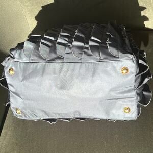 Rare PRADA Tessuto Nylon Ruffle Tote Keychain Gray Gold