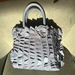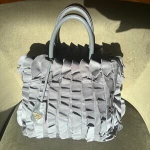 Rare PRADA Tessuto Nylon Ruffle Tote Keychain Gray Gold