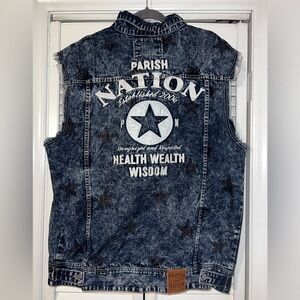 Rare Parish Nation Denim Vest Jean Jacket with Star Pattern