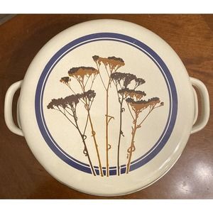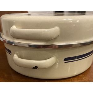 Rare Vintage 2 piece enamelware covered dish GHC Queen Anne’s Lace 10”.