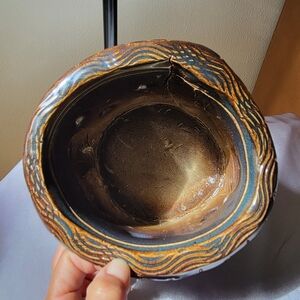 Rare Piece Vintage Handmade Decorative Bowl Signed Ceramic Pottery Blue Red Etc