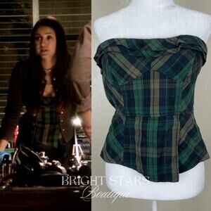 Rare Plaid Tartan Corset Top ASO Elena Gilbert The Vampire Diaries Y2K TVD Character : Elena Gilbert played by Nina Dobrev Appearance : The Vampire Diaries Season 3 Episode 6 Smells Like Teen Spirit Color : Green Plaid Size Labeled : Medium - Please see measurements this is vintage and may run smaller than modern sizes Condition : Great preowned condition Material Content : Shell 100% Cotton, Lining 100% Cotton Measurements : Approximate measurements below additional measurements available upon request  Pit to Pit 15.5 Inches  Length 13 Inches This is a screen accurate item but it is not a screen worn item. Elena Gilbert, The Vampire Diaries, Nina Dobrev, Screen Accurate, Vintage, Y2k, 2000s, Cosplay, Costume, Wardrobe, ASO, As Seen On, Mystic Falls, TVD, Plaid, Tartan, Bustier, Corset, Strapless,