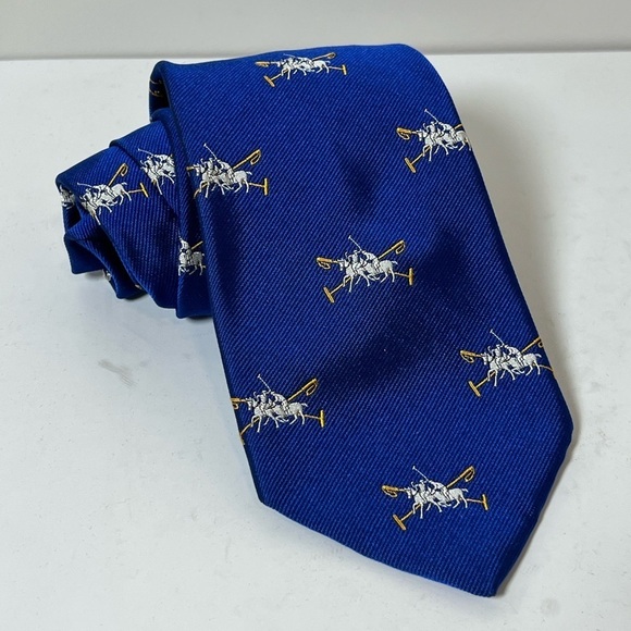 Rare Polo Ralph Lauren Hand Made in Italy Navy All Over Logo Polo Horses Tie