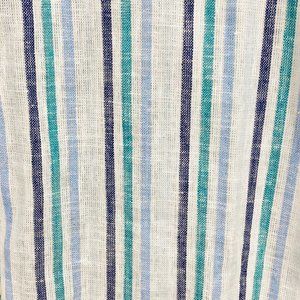 Porto Cervo short sleeve button down top. Stripes in shades of blue with aqua/white/black. Fabric is "mixed linen" per the tag. Made in Italy. Size M. See measurements below.