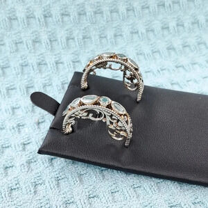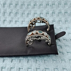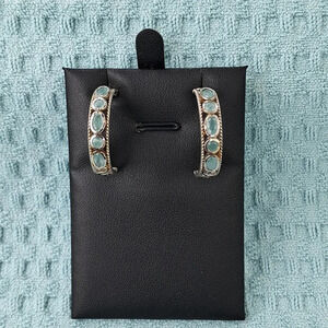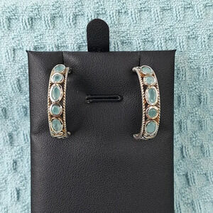 This Rare Gorgeous Gemstone Boast Bluish To Greenish Hues. Rare Premium Natural Grandidierite Half-hoop Earrings In 925 Sterling Silver.