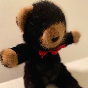 This rare preowned / vintage Real Mink fur Teddy Bear with red bowtie is approximately 12".