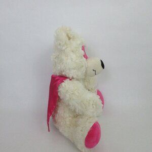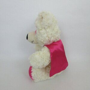 Rare Progressive Plush Farrar White Bear w/Pink Cape & Mask 10" Curly Soft Fur