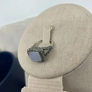 💎 Rare QVC Sterling Silver Gray Chalcedony & Marcasite Ring - Size 7