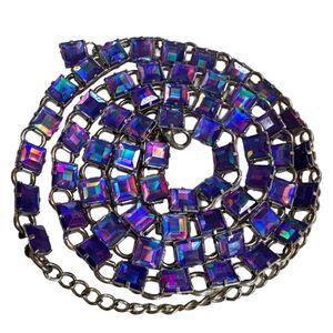 Rare Quality 40” Long Purple Iridescent Link Necklace or Belt Vintage 90s Style