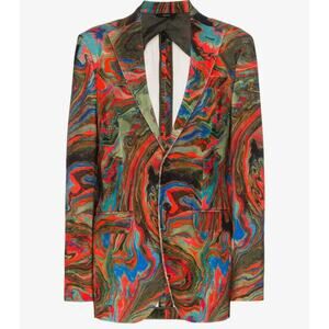 Rare limited-edition blazer from the R13 x Alison Mosshart (The Kills, The Dead Weather) capsule collection. Swirled multicolor marbled velvet, structured shoulders, single-breasted fit, back double vent, extra buttons included. Worn once, flawless exterior — only a small tear inside the underarm lining (easy to stitch, doesn’t affect wear).