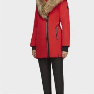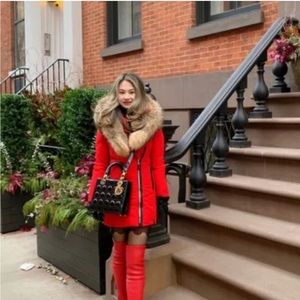 A stylist form-fitting parka with a plunging shawl hood and an asymmetrical zip closure. This puffer is filled with a 90-10 mix of traceable goose down and feathers, making it ideal for sub-zero temperatures. It has a built-in interior high-neck dickie and extra-long storm cuffs that seal in heat. Its striking hood is fully lined with rabbit fur and trimmed with racoon fur. Amp it up with a pair of high-heel ankle boots or dress it down with a pair of treaded-sole boots.
