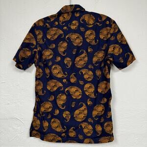 Rare Rabbit Blue Orange Paisley Wave Button Down Shirt Mens M Short Sleeve