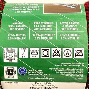 Acrylic and metallic blend yarn ideal for crafting, knitting, and crocheting. Festive holiday colors with a medium weight for versatile projects. The colors are very dark green and very dark red with gold metallic accents. ONLY TWO SKEINS ARE AVAILABLE.