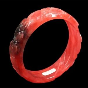 RARE Red Jade Hand Carved 62mm Lotus Flower Ruyi Fish Bangle Bracelet