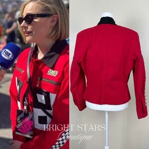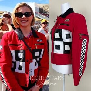 Rare Red Vintage Jacket ASO Chloe Grace Moretz Black White Formula 1 Grand Prix