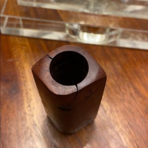 Rare Red Wood Stash Bottle with Wood Stopper Measurements Overall 5 1/8” tall x 3 1/2” round
