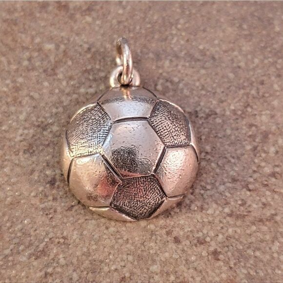 Rare retired James Avery sterling silver antiqued textured soccer ball charm.