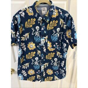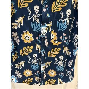 Rare Reverse Threads Floral Skeletons Button Down Men’s Size Large EUC