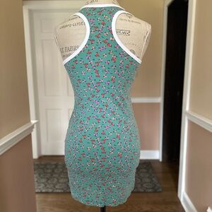Color: Green/Aqua with Pink and Red Floral Print