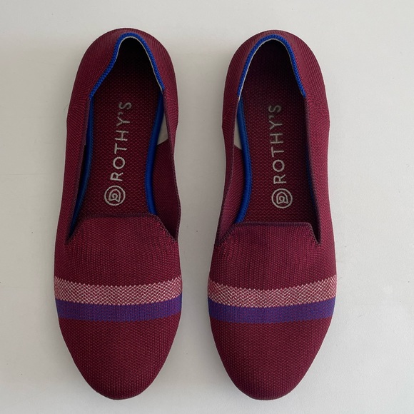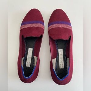 Rare find! Rothy’s burgundy loafer with blue and white stripe.
