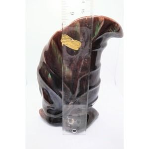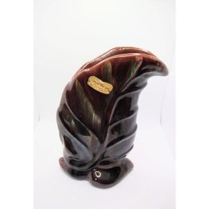 Brown with speck of green highly glazed roayal haegar leaf shape vase 6" no chips no cracks with its original sticker