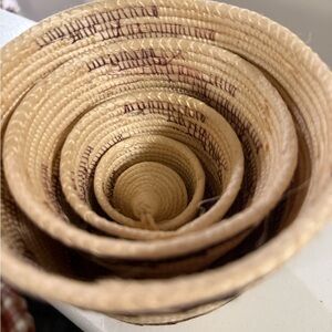 Beautiful set of woven baskets in natural tones. Perfect for home decor.