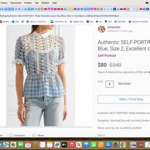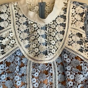 Rare SELF-PORTRAIT Petal Paneled Lace Top Blue, Size 2