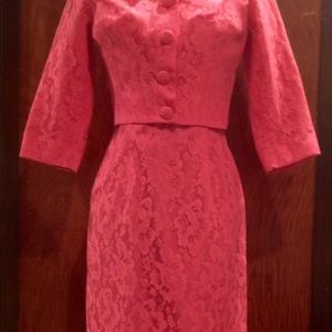 Rare SYLVIA ANN 1950's Vintage Lace Wiggle Dress with Matching Jacket Coat XS.