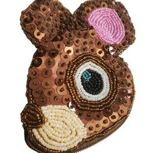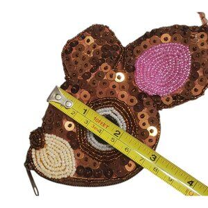 Rare Sanrio Deery-Lou Coin Purse Sequin Beaded Wrist Strap Brown Reindeer Pouch