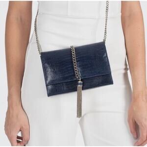Santesteban Italy Navy Croc Lizard Sterling Silver Convertible Crossbody