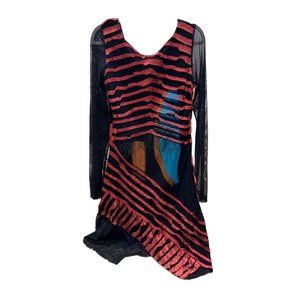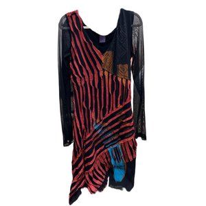 Save the Queen Mesh Slip Dress, 90s Y2K Legatte Jeans Mesh Slip Dress, Abstract Tribal Print, Asymmetrical, Made in Italy, Size S-M