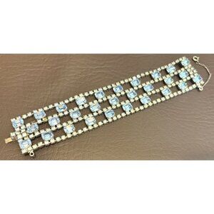 Rare Schreiner? Juliana? Vintage Blue Baguette Rhinestone Push Lock Bracelet