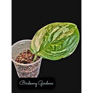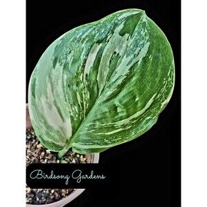 Scindapsus treubii Moonlight Splash is a rare variegated form of the popular Moonlight, displaying unique white and cream splashes across its silvery-green leaves. Each cutting is one-of-a-kind, and variegation patterns vary from light speckling to bold marbling. This variety is highly sought after by collectors and seldom offered for sale.