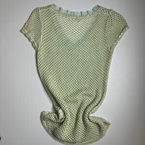 Rare Seafoam Mesh Net Top Mermaid Fairycore Whimsical Sheer Ruffle Y2K S Glitter