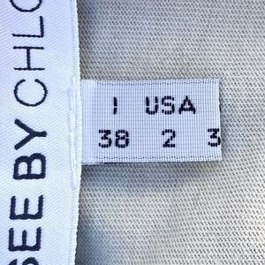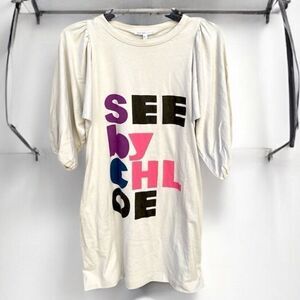 Rare See by Chloe Logo Light Gray Graphic Mini Dress w/Bell Sleeves. XS (2) EUC
