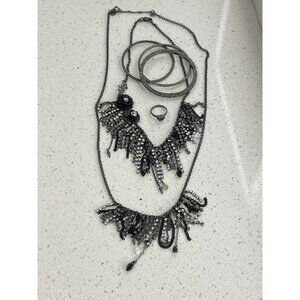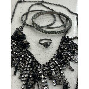 Rare Set Juicy Couture Vtg Gunmetal Pave Rhinestone 2 Necklaces 1 Ring 3 Bangles