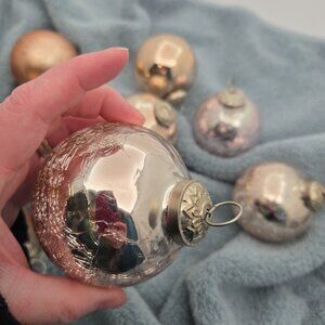 Rare! Set of 10 Rose Gold Kugel Style Crackle Mercury Glass Ornaments - Heirloom