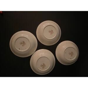 Each bowl measures 5" across and 1 1/4" high, perfect for serving desserts or berries. The set is in good vintage condition with light wear, typical for its age. There is some light crazing, which adds to the antique charm and character of these unique pieces. Please refer to the photos for details.