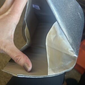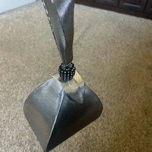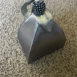 Rare Silver Metallic boxy ladies top handle evening bag, unbranded, jeweled