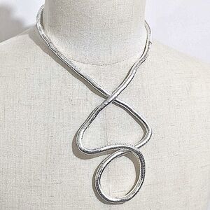 Classic silver plated moldable flexible necklace, which can also be worn as a bracelet, hair accessory scarf tie or even a belt.