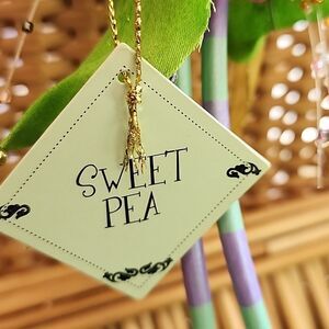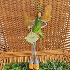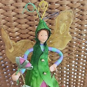 Sweet Pea wears leaf and floral attire and is outfitted with wired and glittered wings. Sweet Pea has seed bead wispies that make this slender figurine even more magical.