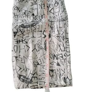 The print is super artistic, looks like newspaper, or graffiti writing, is super cool art to wear, and was made on limited edition.