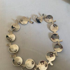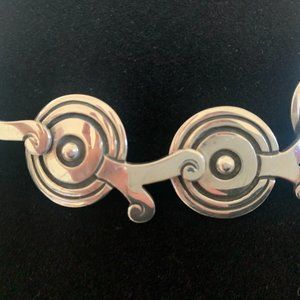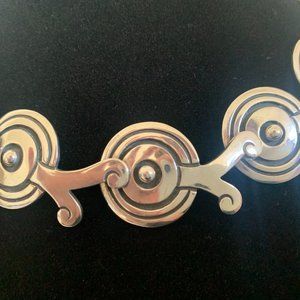 Rare Sterling Silver Swirl Medallion Mexican Neclace-17"L 119 Grams Eye Catching