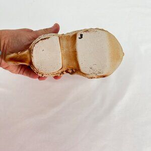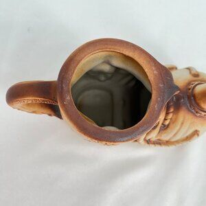 This charming ceramic teapot is an embodiment of vintage artistry, featuring rustic designs of animals and a quaint house atop the lid. Its earthy tones and intricate detailing make it a delightful addition to a collection or as a conversation piece for display.
