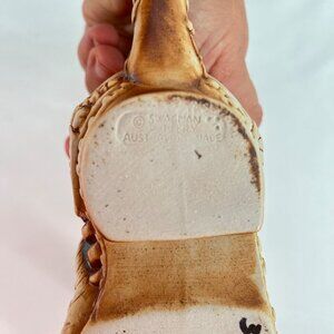 Swagman Pottery was set up by Antonia and Rafael Maric who came to Queensland from Croatia in the early 1970s, a trademark of Australian Enterprises Pty Ltd of 73-75. In the mid-1980s, they started making slipcast ceramic wares featuring Australian flora and fauna under the Swagman Pottery name, catering mainly to the tourist market. In 1993, they also began selling pewter designs under the label Oz Pewter. However, the Swagman Pottery business name was cancelled in 2005. They then became vintage items and are only available in collector's market.
