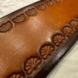 Rare Tech Ether Guild Rhumb TEG Brass 1970s Vintage Belt Buckle Leather Belt 42”